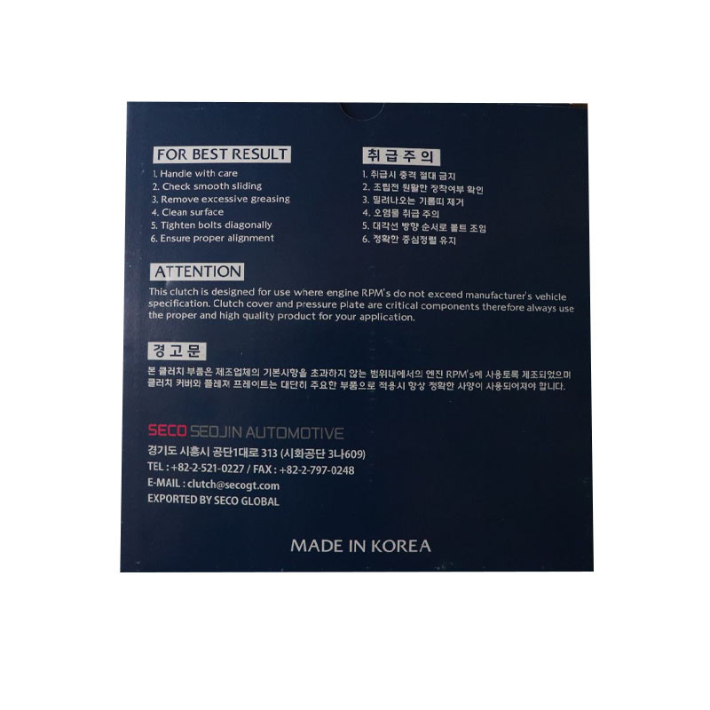 دیسک و صفحه سکو وارداتی سکو مناسب برای انواع خودرو پراید - ۱۳۲ - ۱۳۱ - ۱۱۱ - صبا - و هاچبک ساخت کره جنوبی است - این مدل با نام سکو کارتن سورمه ای در بازار شناخته شده و دارای کیفیت بسیار بالاست - شتاب بالا - عملکرد خوب و بدون لرزش حین شروع به حرکت و دوام بالا از ویژگی های بارز این کالا است. طبق تعریف کلی، کلاچ وسیلهای است که حرکت چرخشی یک شفت را به شفت دیگر منتقل مینماید. کلاچ در واقع یک رابط اصطکاکی بین جعبهدنده و موتور بوده که در ابتدا توان تولیدی موتور را به جعبهدنده منتقل نموده و پس از آن با حضور سایر سیستمها توان به چرخها منتقل میشود. در واقع به هنگام حرکت کلاچ درگیر بوده و عمل انتقال توان از موتور به جعبهدنده و در نهایت به چرخها اتفاق میافتد. اما به هنگام رانندگی لحظاتی لازم است تا این ارتباط قطع گردد؛ به عنوان مثال جهت تغییر سرعت، نیاز به تعویض دنده است.
